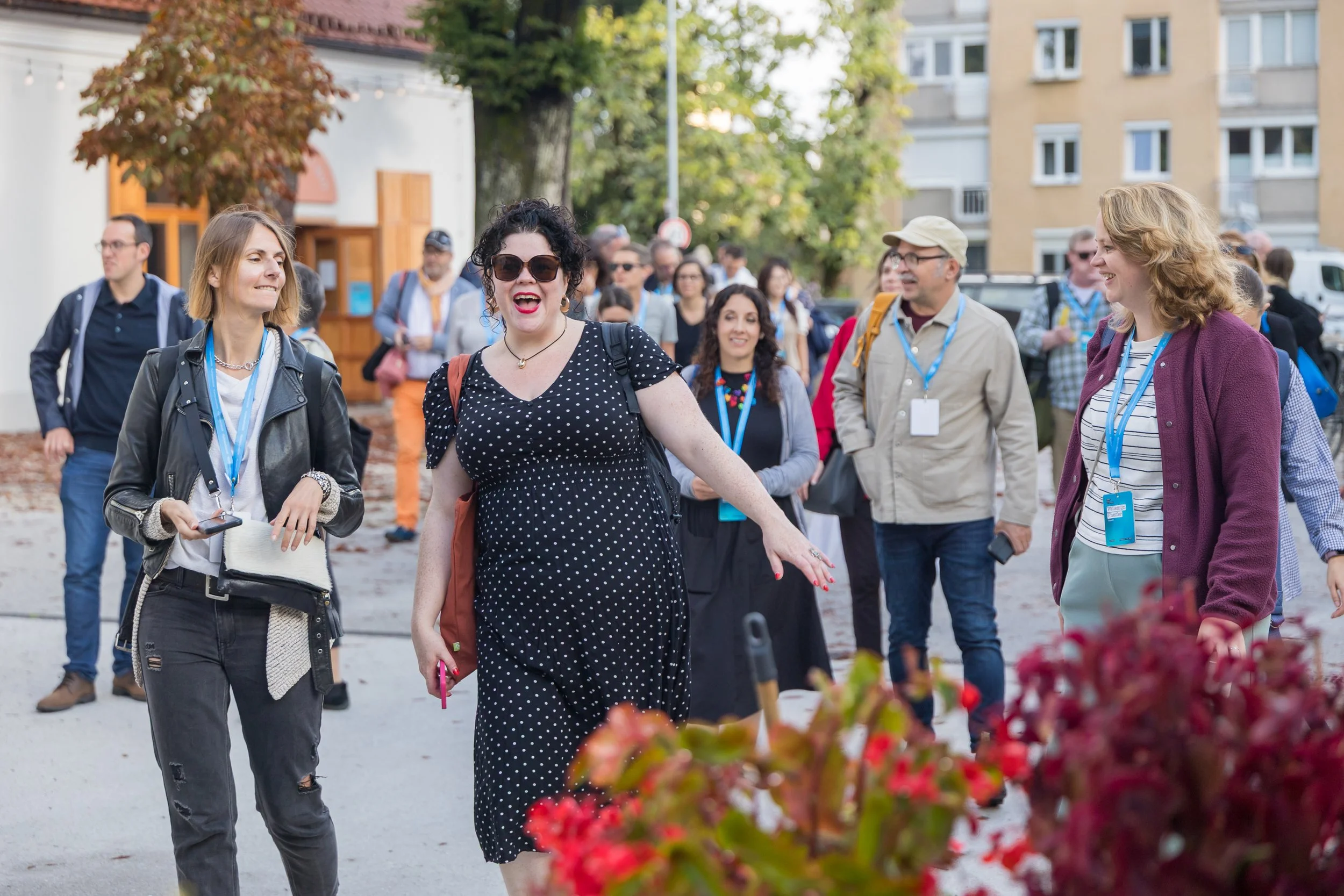 Konferenco smo uradno odprli v ponedeljek, 8. septembra z večerjo in druženjem v Švicariji, kjer so nas s kratkimi nagovori pozdravili Mateja Demšič (Oddelek za kulturo MOL), Maja Zalaznik (predsednica nacionalne komisije za UNESCO), Kjartan Már Ómarsson (koordinator mreže mest literature), Tina Popovič in Damjan Zorc (Ljubljana, Unescovo mesto literature).